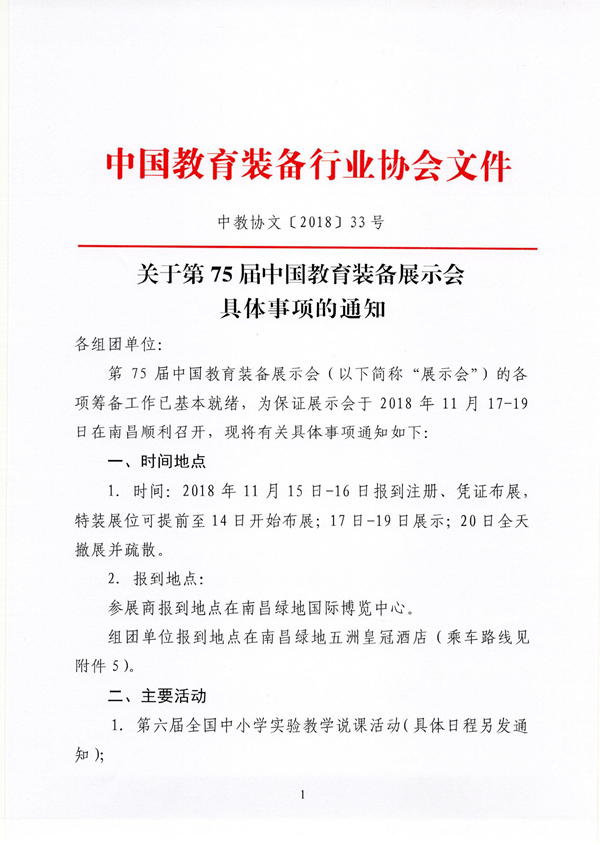 關于第75屆中國(guó)教育裝備展示會(huì)具體(tǐ)&€‍事(shì)項的(de)通(tōng)知(zhī)