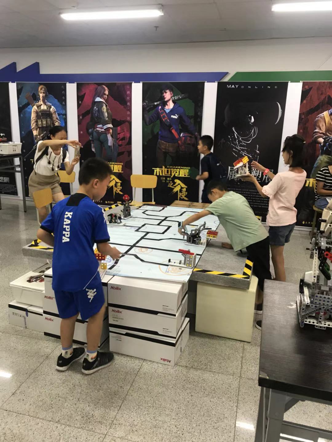 機(jī)器(qì)人(rén)比賽場(c↓★σhǎng)地(dì),讓小(xiǎo)朋(péng)友(yǒu)們可(kě)以用(yòng)自<>≥(zì)己拼裝好(hǎo)的(de)機(jī)器(qì£✔)人(rén)在上(shàng)面比賽。